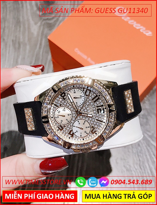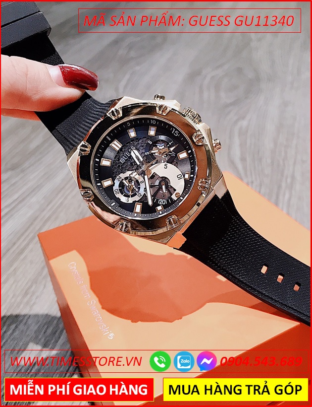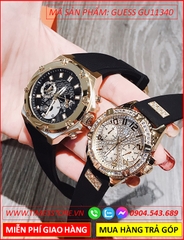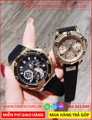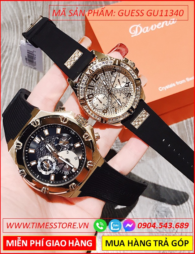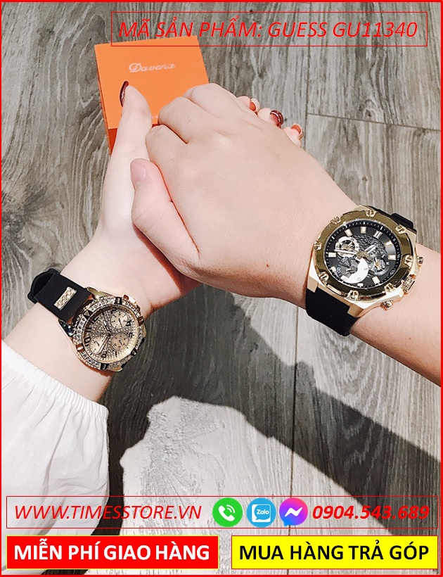Đồng Hồ Cặp Đôi Guess Chronograph Vàng Gold Dây Silicone Đen