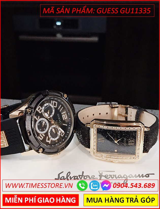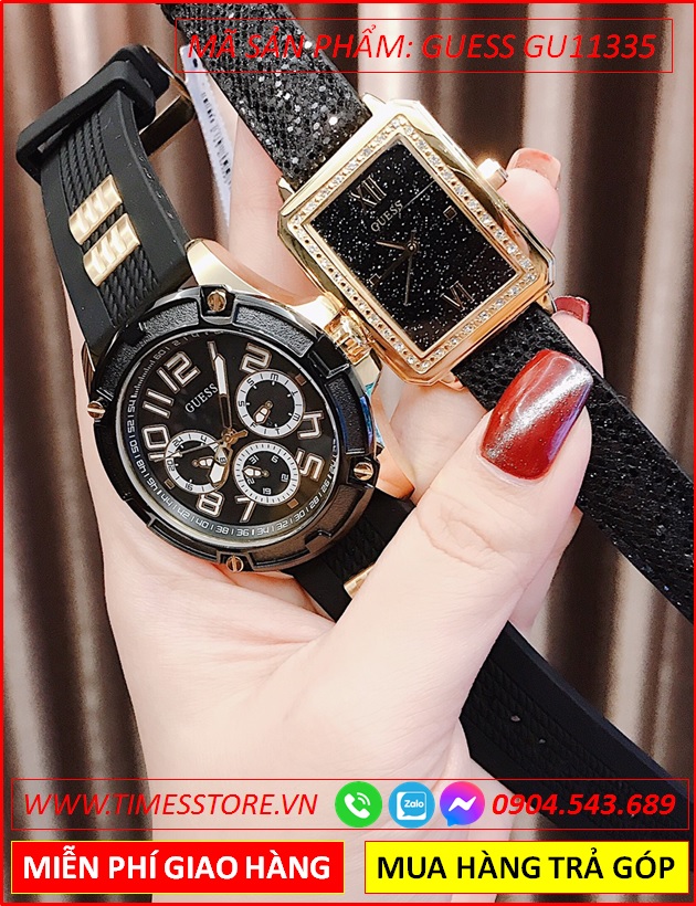 Đồng Hồ Cặp Đôi Guess Mặt Full Đen Thể Thao Thời Trang