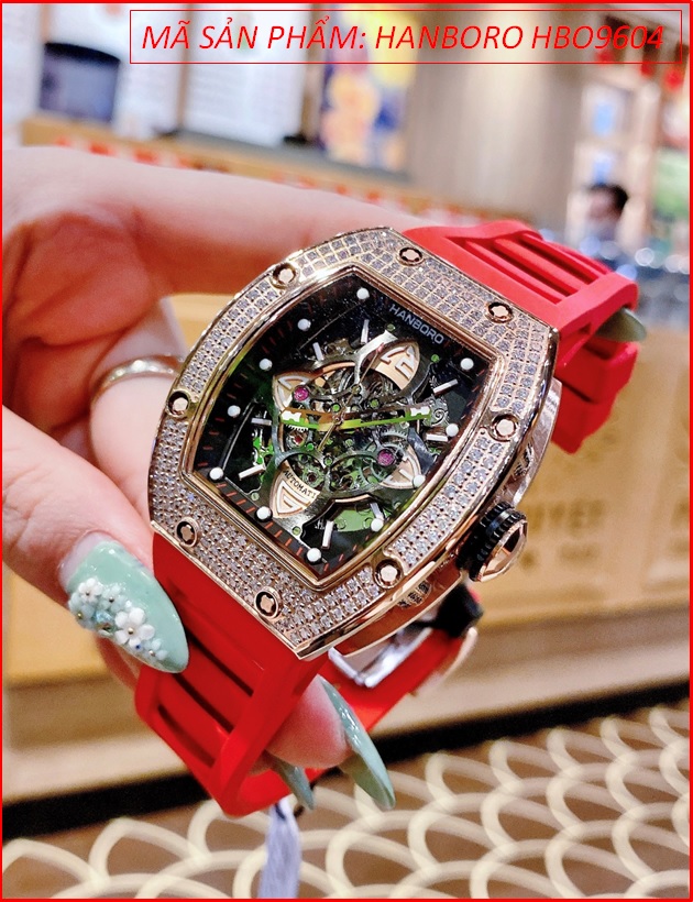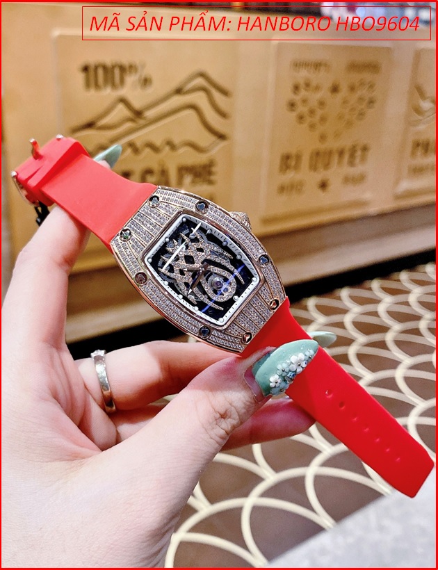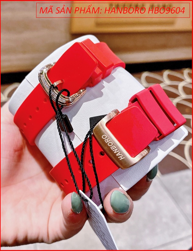 Đồng Hồ Cặp Đôi Hanboro Automatic Rose Gold Silicone Đỏ