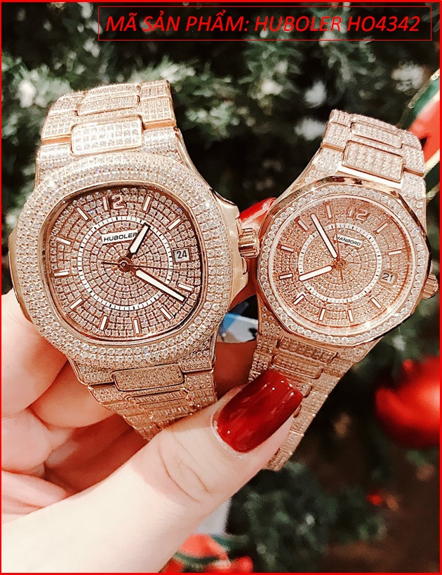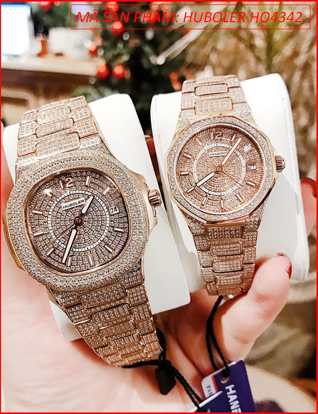 Đồng hồ Cặp Đôi Hanboro By Huboler Full Đá Rose Gold