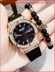 Đồng Hồ Cặp Đôi Hanboro Tựa Hublot Đính Đá Rose Gold Dây Silicone