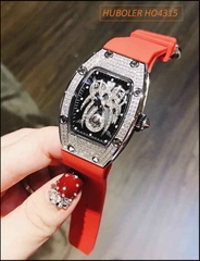 Đồng hồ Nữ Huboler Mặt Nhện Dây Silicone Đỏ Full Đá Swarovski