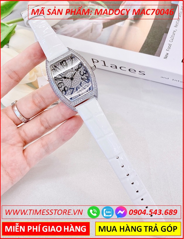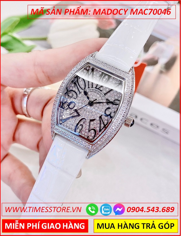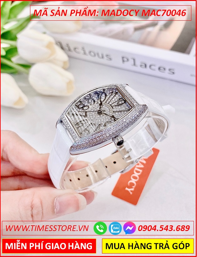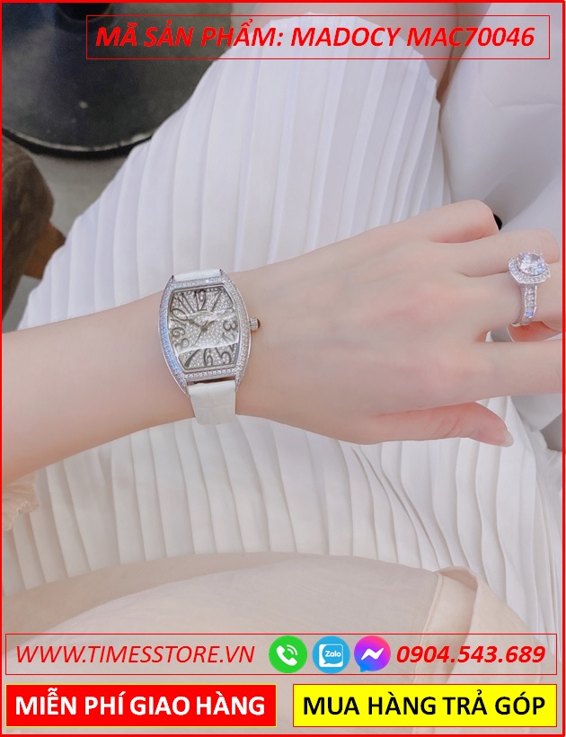 Đồng Hồ Madocy By Christian Nữ Mặt Oval Full Đá Dây Da Trắng