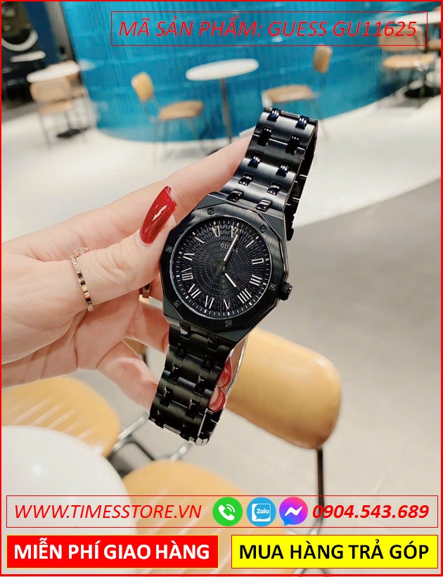 Đồng Hồ Nam Guess Asset Mặt Tròn Dây Kim Loại Full Đen