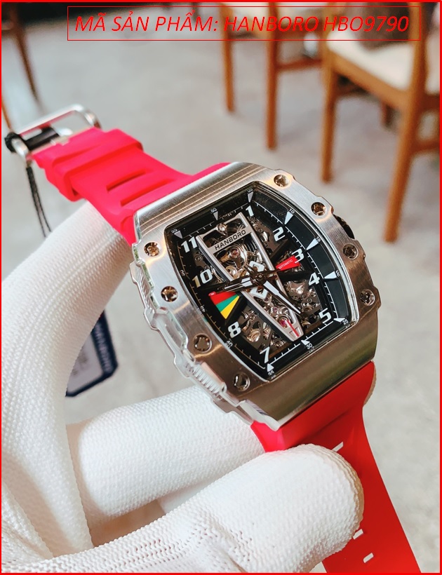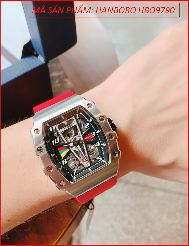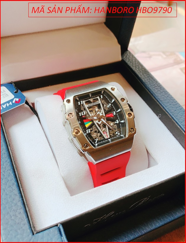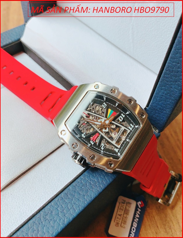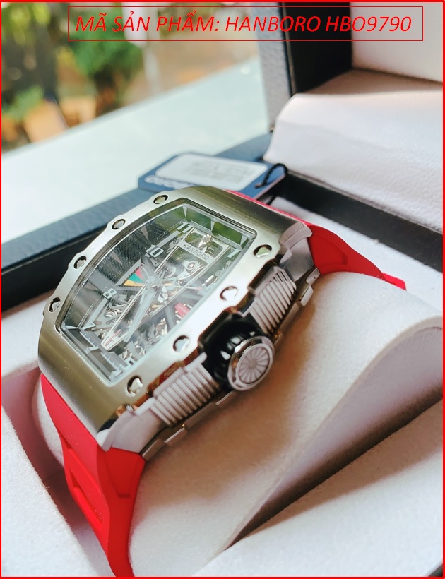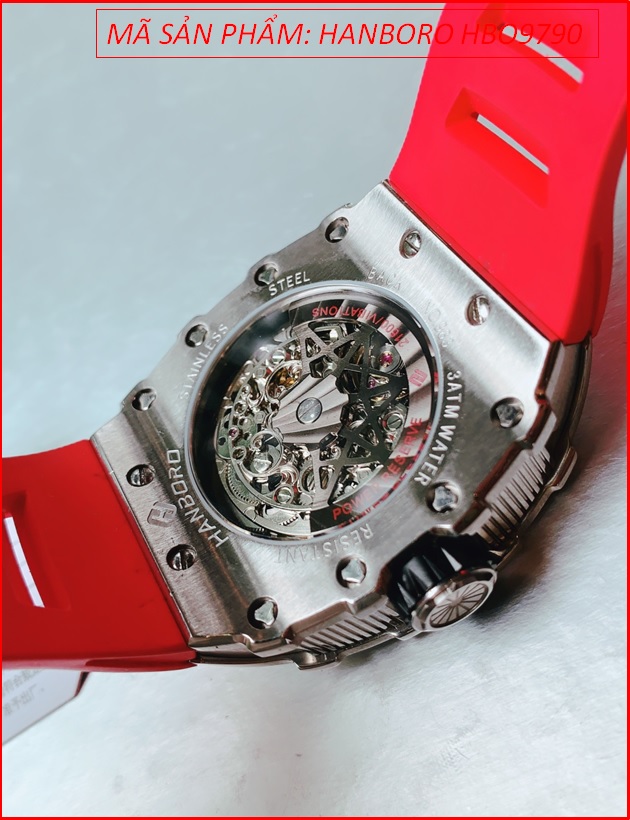 Đồng Hồ Nam Hanboro Automatic Hở Tim Lộ Máy Dây Silicone Đỏ (40x50mm)