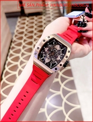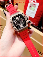 Đồng Hồ Nam Hanboro Automatic Mặt Chữ Nhật Lộ Cơ Dây Cao Su Đỏ (40x50mm)