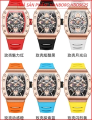 Đồng Hồ Nam Hanboro Automatic Mặt Chữ Nhật Lộ Cơ Dây Cao Su Đỏ