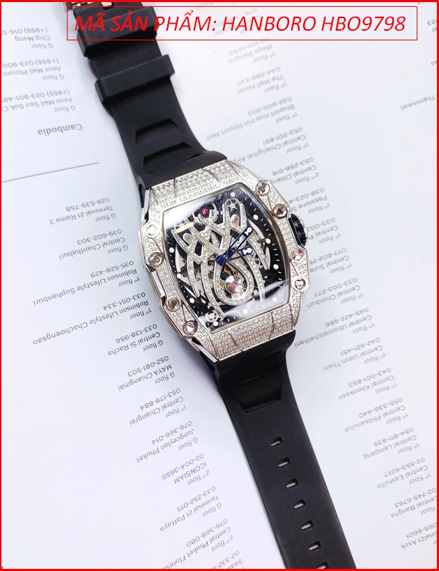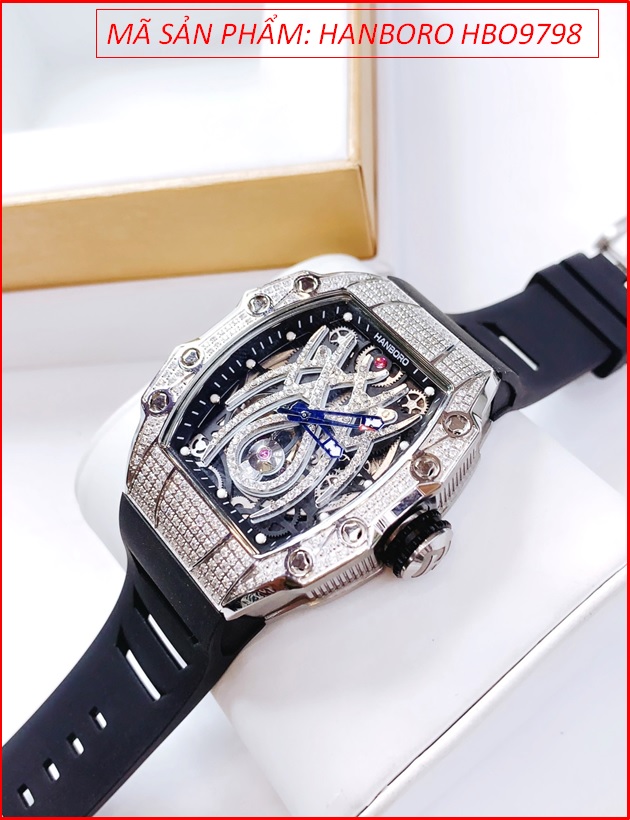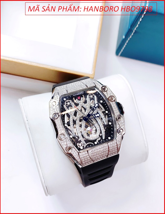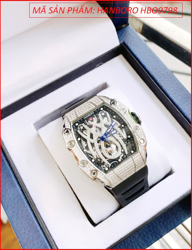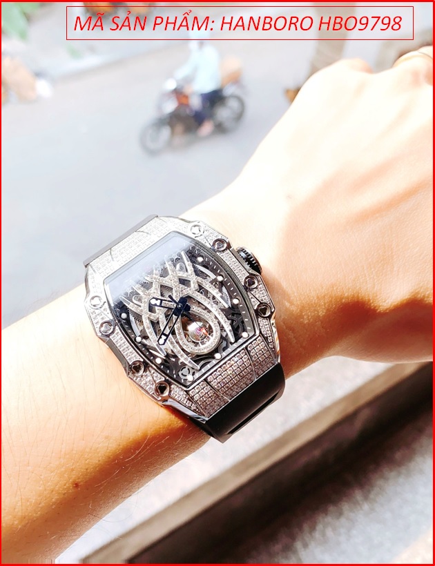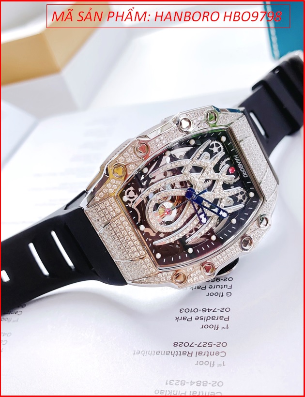 Đồng Hồ Nam Hanboro Automatic Mặt Nhện Full Đính Đá Dây Silicone
