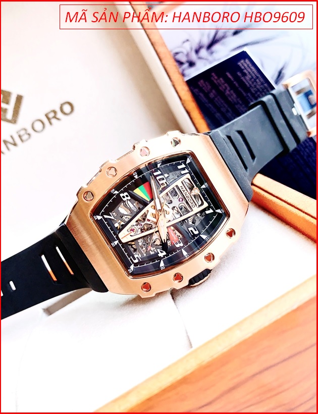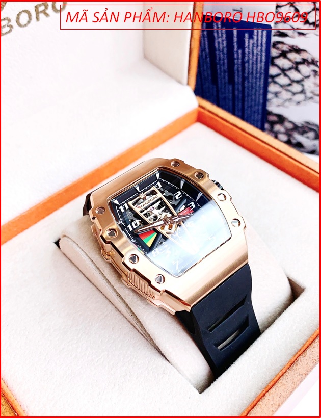 Đồng Hồ Nam Hanboro Automatic Rose Gold Lộ Máy Cơ Dây Silicone (40x50mm)