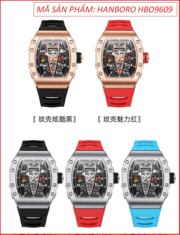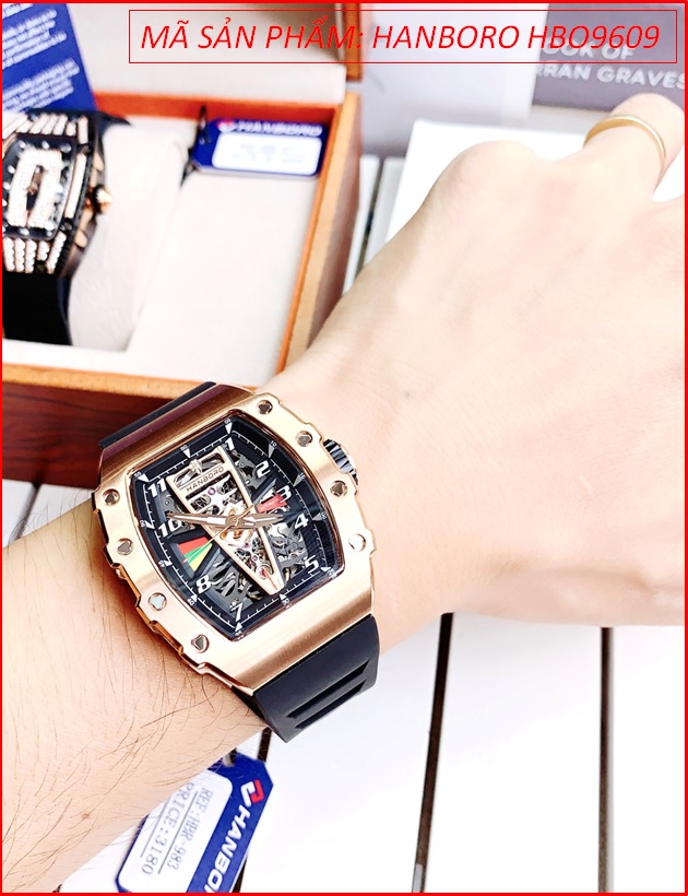 Đồng Hồ Nam Hanboro Automatic Rose Gold Lộ Máy Cơ Dây Silicone