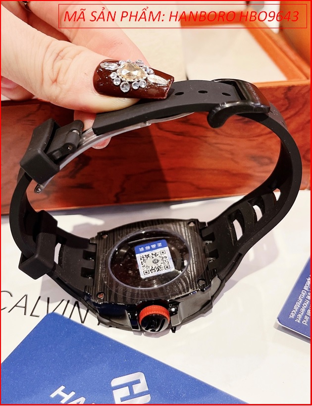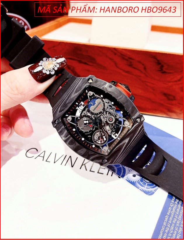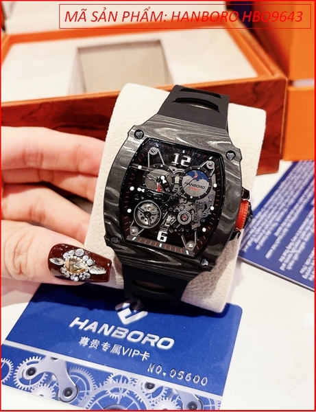 Đồng Hồ Nam Hanboro Automatic Tựa Richard Miller Full Đen Dây Silicone