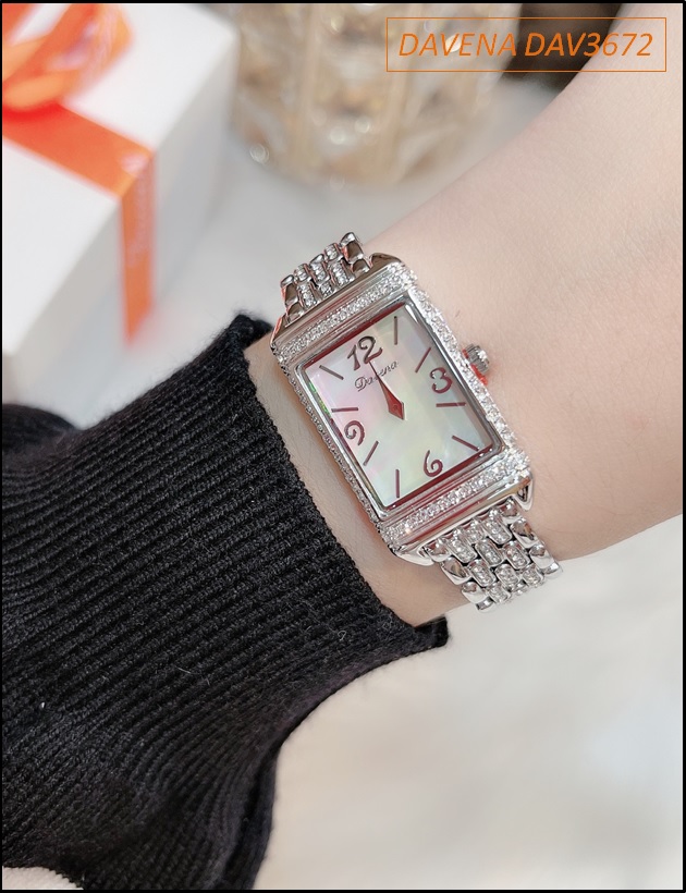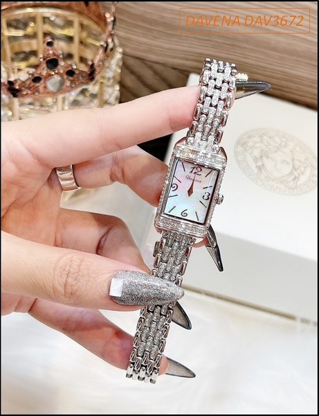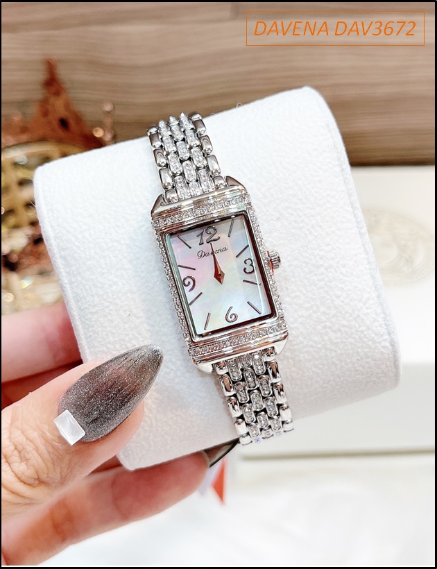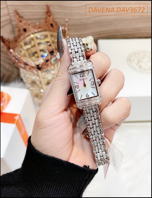 Đồng hồ Nữ Davena Mặt Chữ Nhật Full Đá Swarovski Crystal