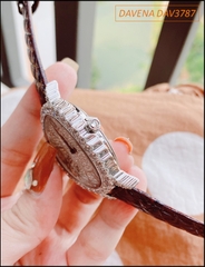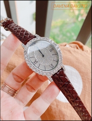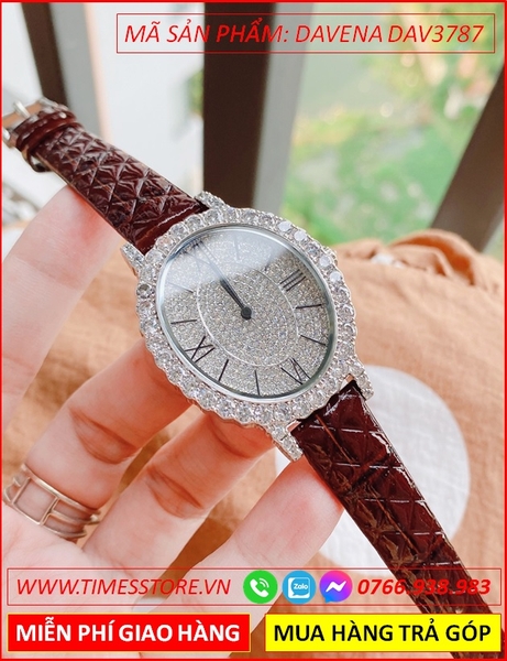 Đồng hồ Nữ Davena Mặt Elip Dây Da Mận Mặt Full Đá Swarovski