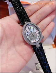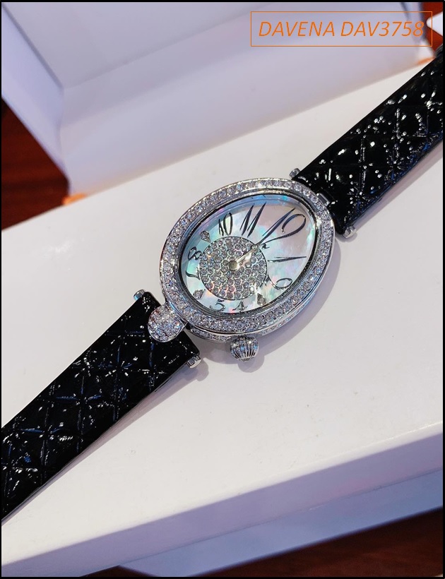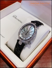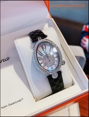 Đồng hồ Nữ Davena Mặt Elip Dây Da Mặt Trắng Đá Swarovski