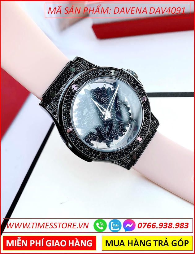 Đồng Hồ Nữ Davena Mặt Ngôi Sao Xoay Full Đen