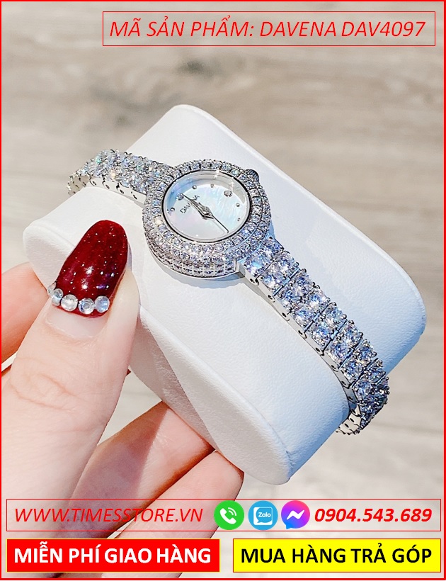 Đồng Hồ Nữ Davena Mặt Tròn Full Đá Swarovski