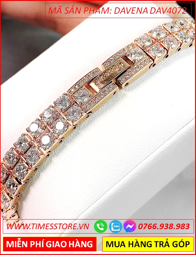 Đồng Hồ Nữ Davena Mặt Tròn Lắc Tay Đá Rose Gold