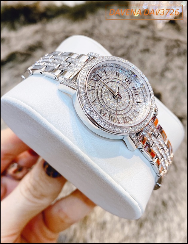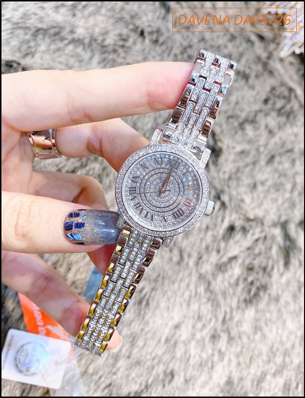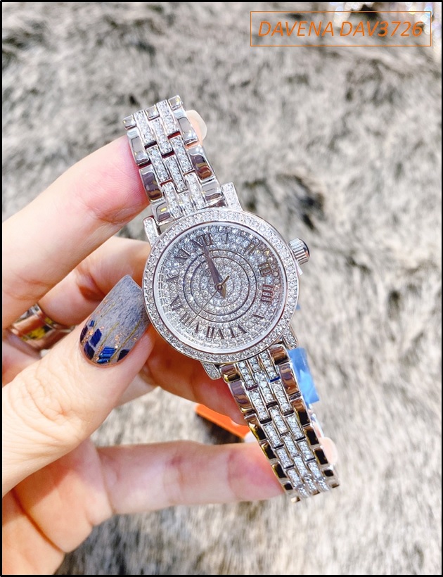 Đồng hồ Nữ Davena Mặt Tròn size nhỏ Full Đá Swarovski Crystal