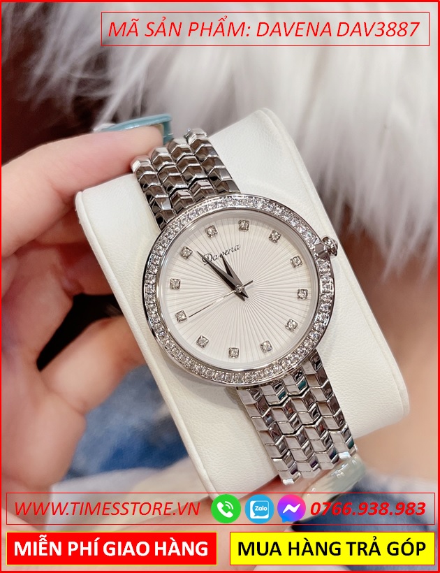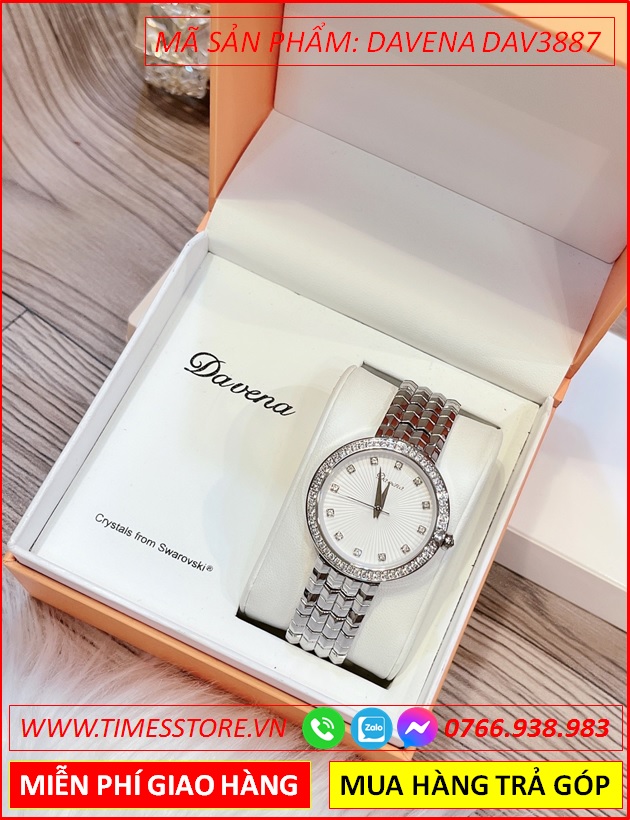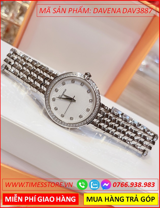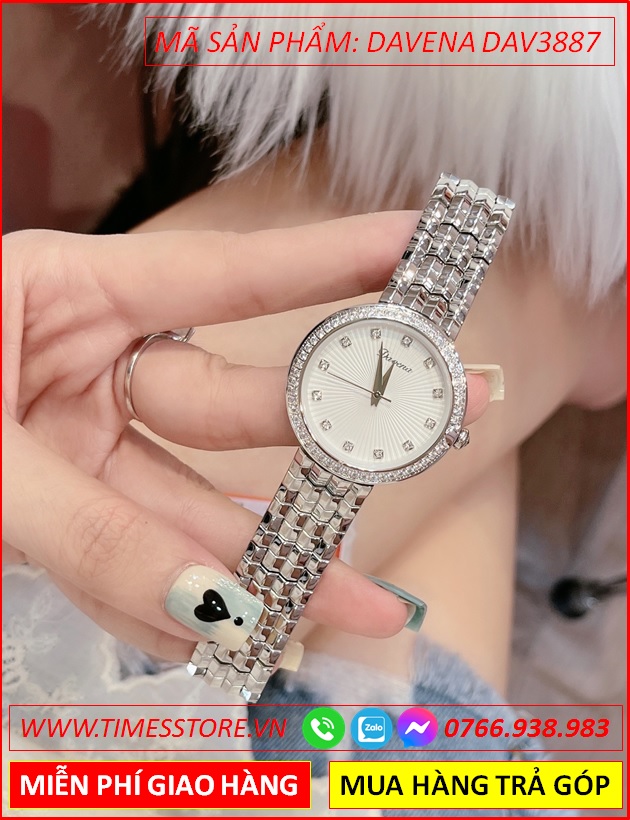 Đồng hồ Nữ Davena Mặt Tròn Trắng Đính Full Đá Swarovski