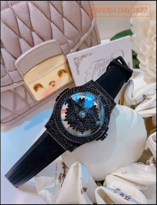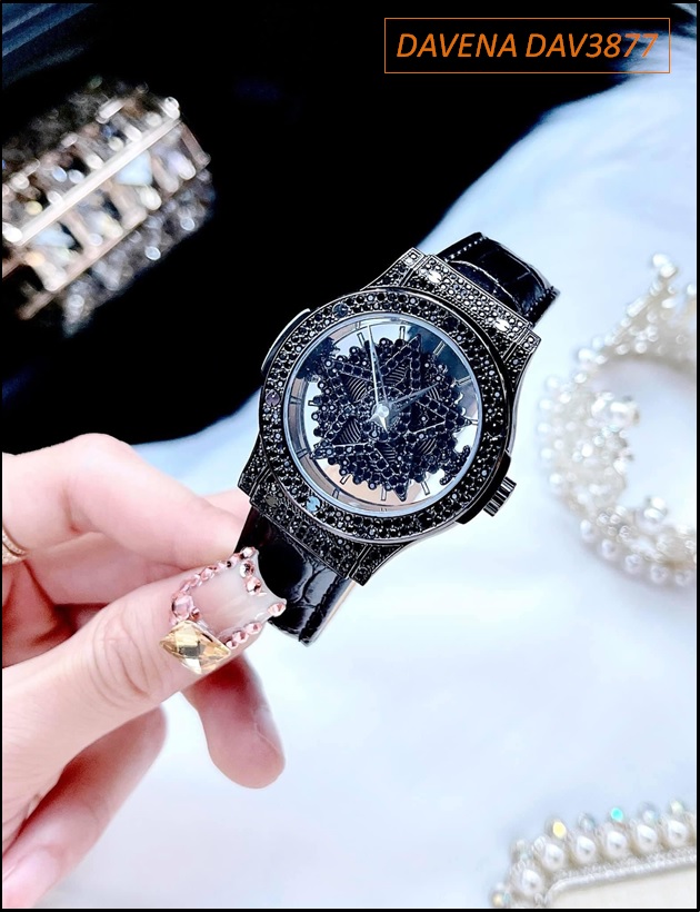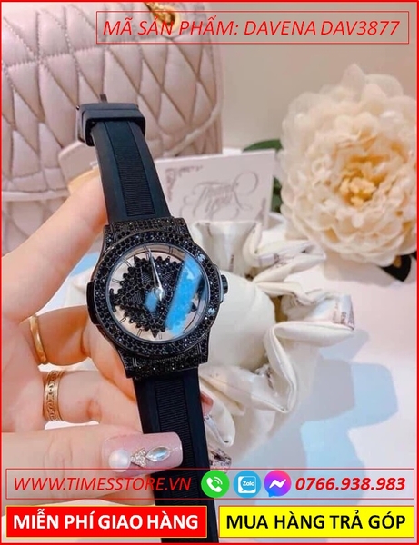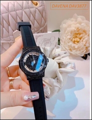 Đồng hồ Nữ Davena Mặt Xoay Ngôi Sao Full Đen Đá Swarovski