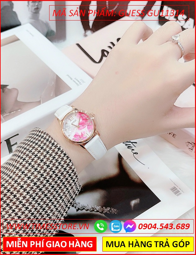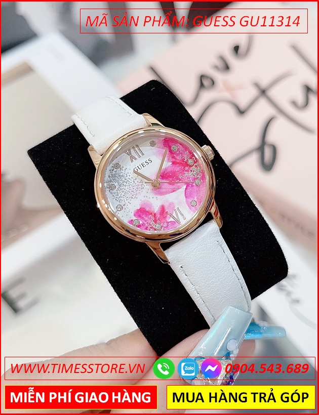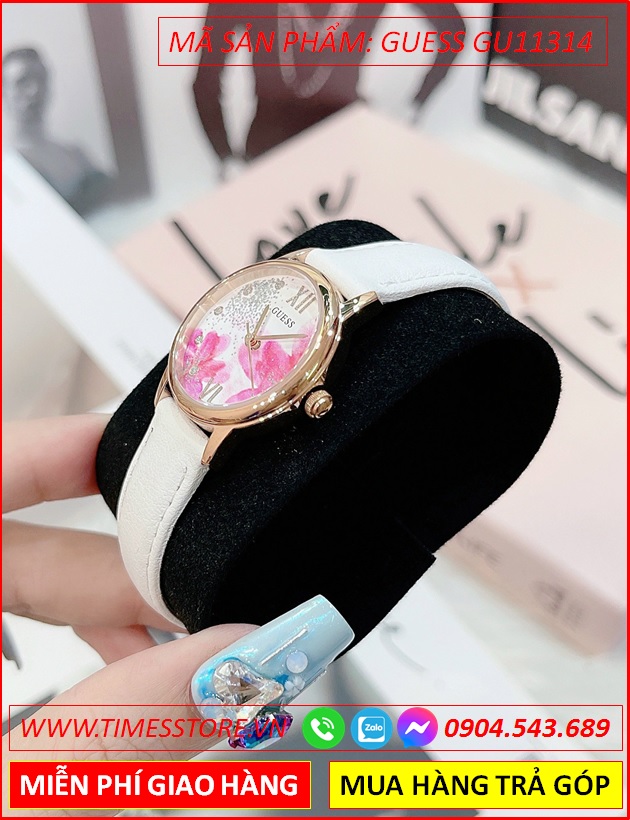 Đồng hồ Nữ Guess Floral Họa Tiết Cánh Hoa Đào Dây Da Trắng