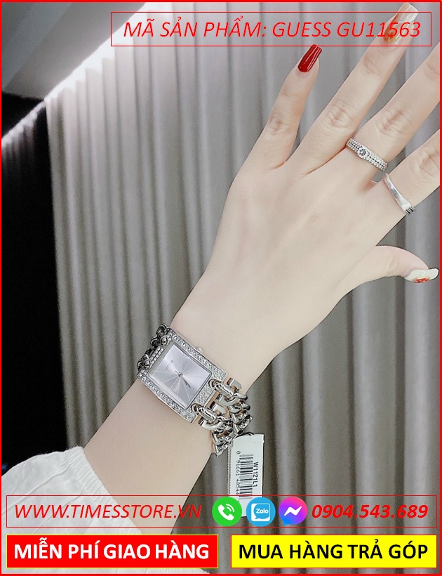 Đồng Hồ Nữ Guess Mặt Chữ Nhật Đính Đá Dây Mắt Xích