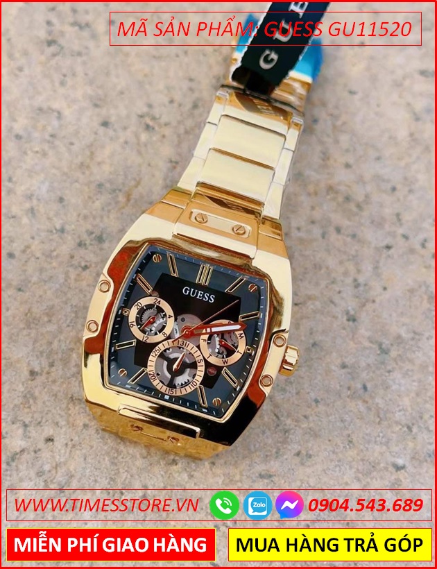 Đồng Hồ Nữ Guess Phoenix Mặt Đen 6 Kim Dây Full Vàng Gold