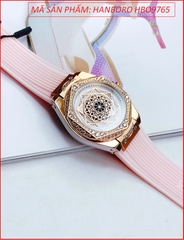 Đồng Hồ Nữ Hanboro Mặt Vũ Trụ Rose Gold Dây Silicone Hồng
