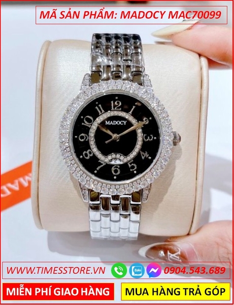 Đồng Hồ Nữ Madocy Mặt Đen Đính Đá Dây Kim Loại