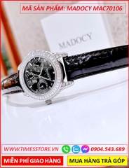 Đồng Hồ Nữ Madocy Mặt Tròn Đen Đính Đá 6 Kim Dây Da