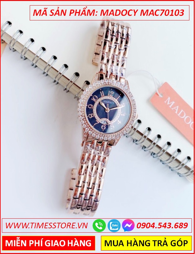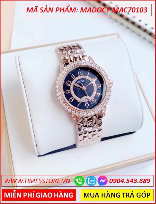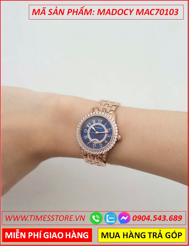 Đồng Hồ Nữ Madocy Mặt Xanh Đính Đá Dây Rose Gold