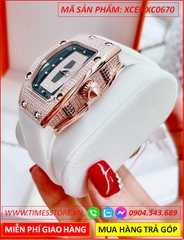 Đồng Hồ Nữ Xcer Mặt Full Đá Rose Gold Dây Silicone Trắng