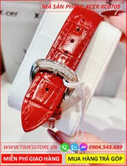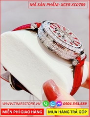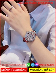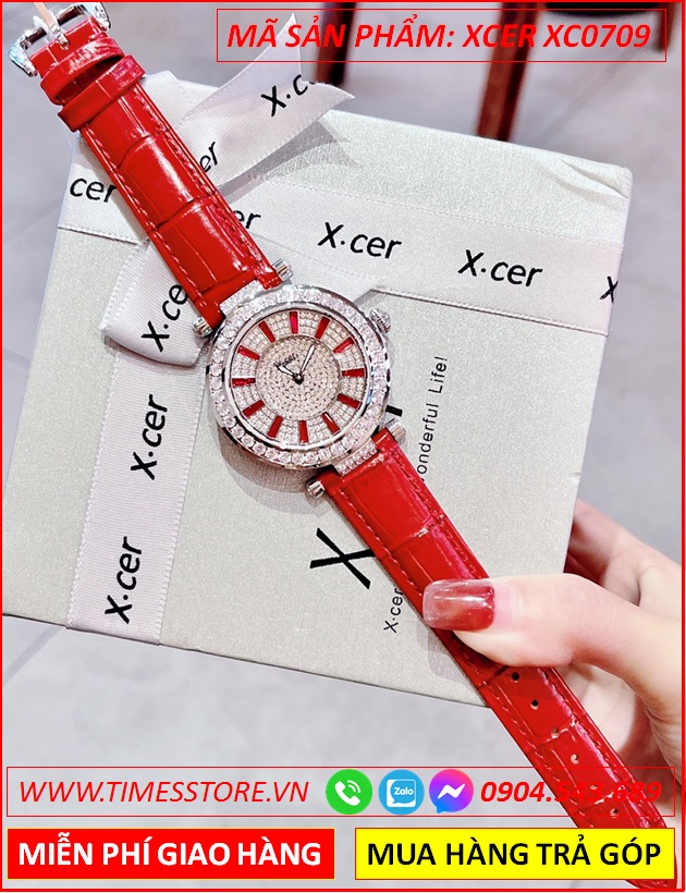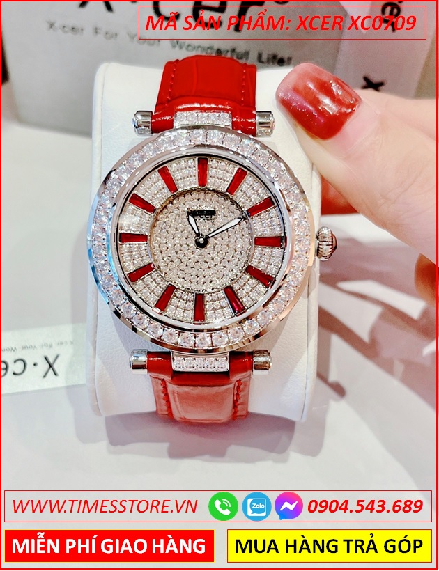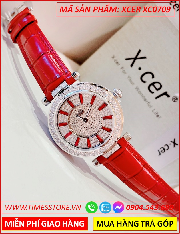 Đồng Hồ Nữ Xcer Mặt Tròn Đá Swarovski Dây Da Đỏ