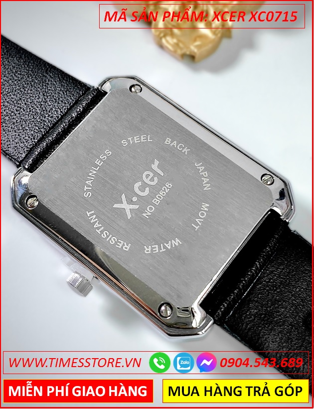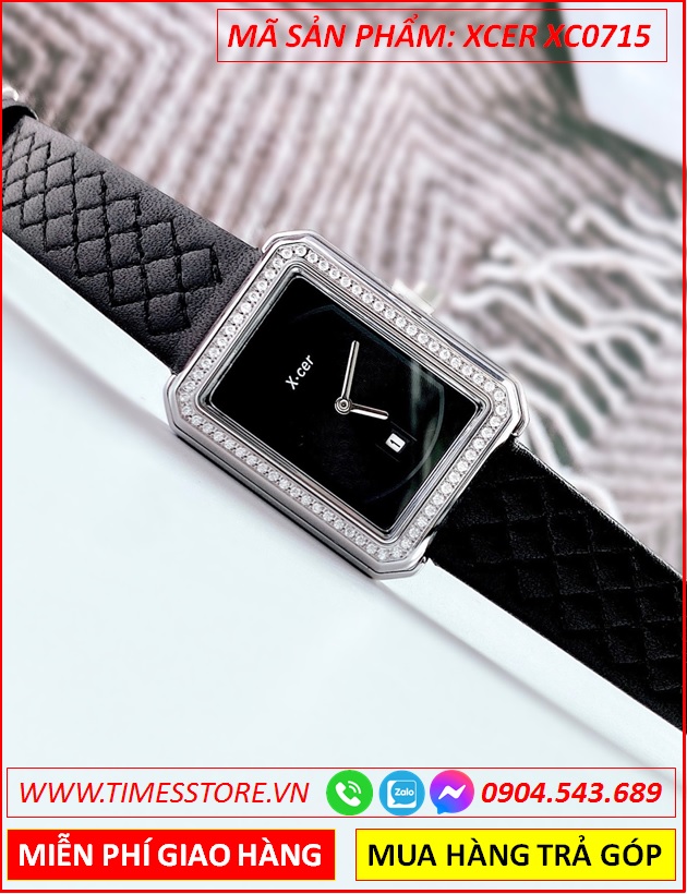 Đồng Hồ Nữ Xcer Tựa Chanel Mặt Chữ Nhật Đen Dây Da