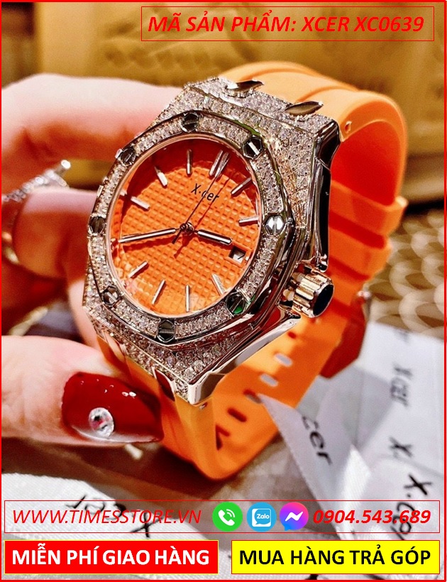 Đồng Hồ Nữ Xcer Tựa Hublot Đính Đá Swarovski Dây Silicone Cam