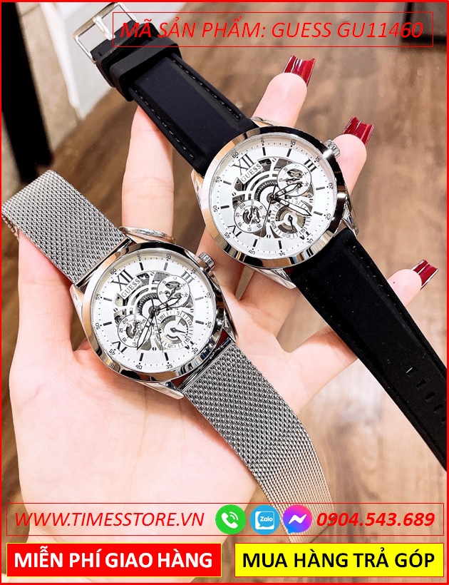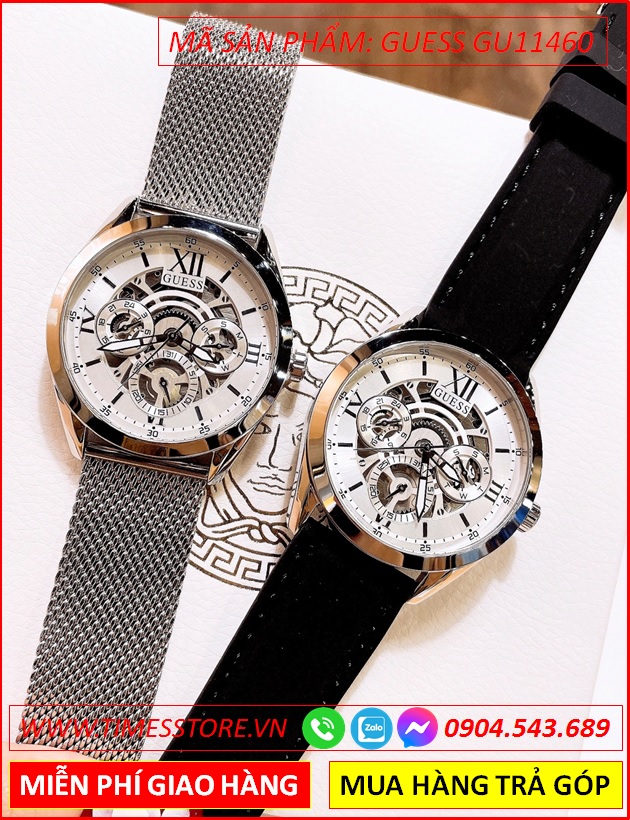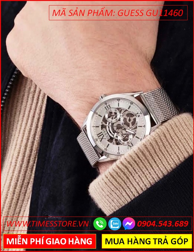 Đồng Hồ Guess Nam Mặt Tròn Lộ Cơ Dây Mesh Lưới