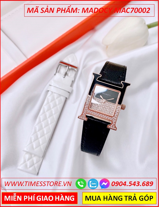 Set Đồng Hồ Madocy Nữ Tựa Hermes Mặt Vuông Rose Gold
