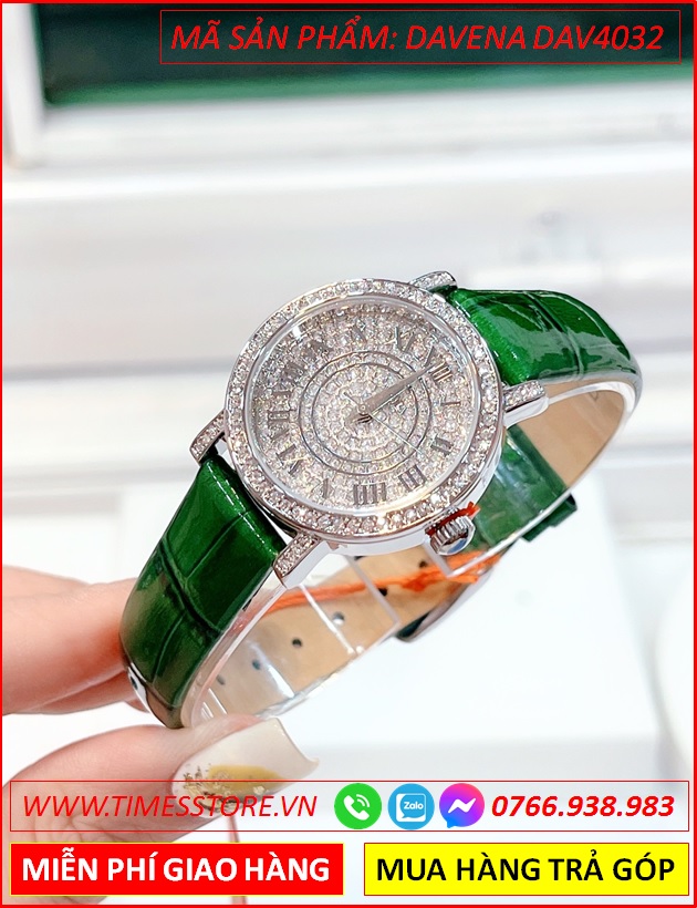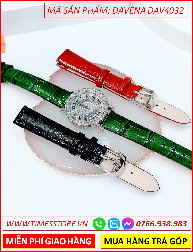 Set Đồng hồ Nữ Davena Đính Full Đá Swarovski Tặng Thêm 02 Dây Da