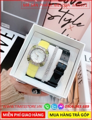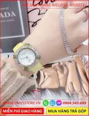 Set Đồng hồ Nữ Melissa Mặt Tròn Đá Pha Lê Dây Da Màu Vàng Chanh