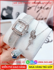 Set Đồng hồ Nữ Melissa Mặt Vuông Lắc Tay Đính Full Đá Swarovski